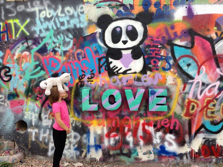 Before Thanksgiving, my family made an outing to Hope Park in Austin. It’s the kind of thing that’s difficult to describe; you have to see it in person to get the full effect. Basically, an empty lot was appropriated by the city and made into a graffiti park, where (it seems) there are no rules and anarchy reigns. All you need is some spray paint, artistic vision, and something positive to say. As you can see, there is a lot being said, all the time. Since people are constantly painting over older works, the park itself is ever-evolving—a dynamic entity of self-expression in the heart of downtown Austin.